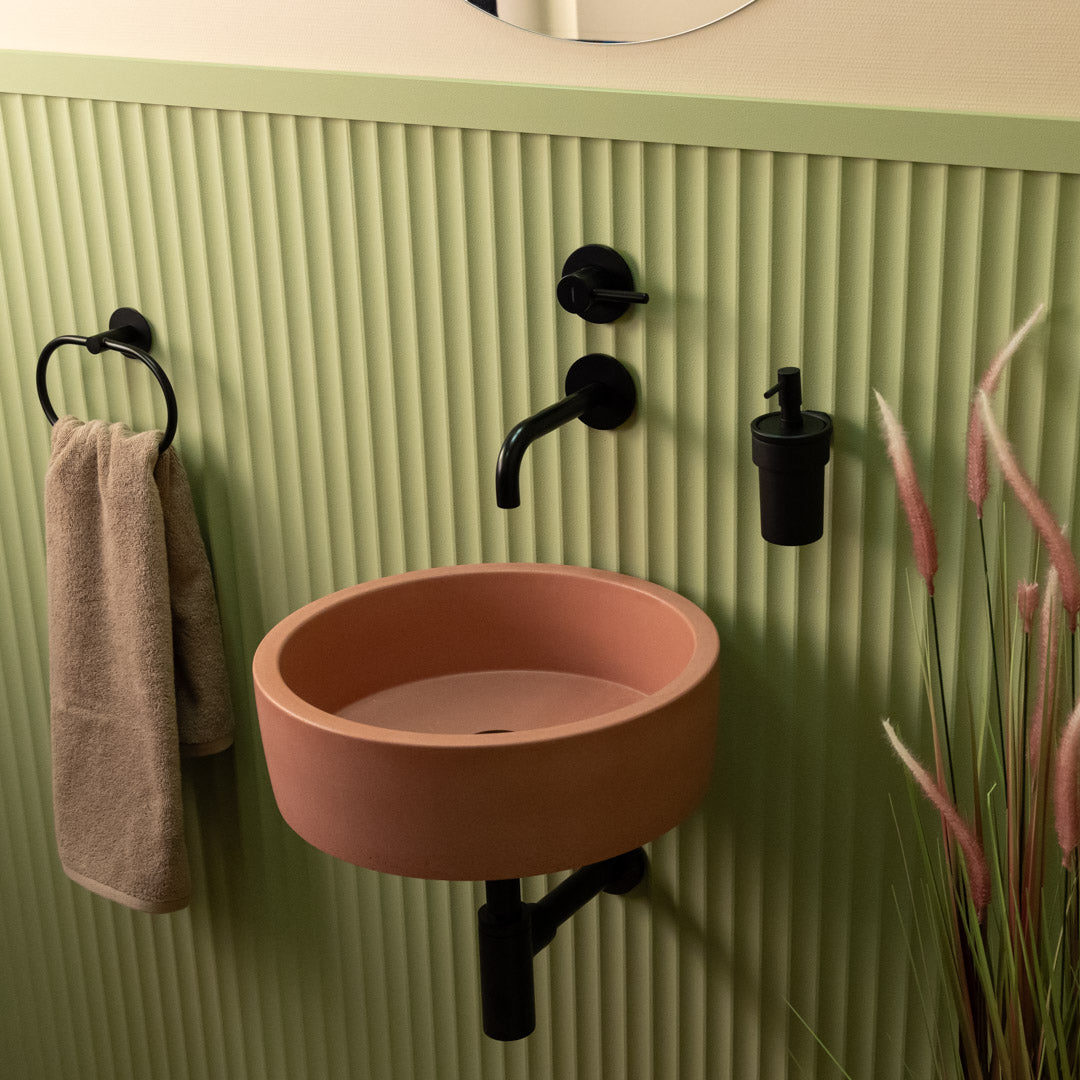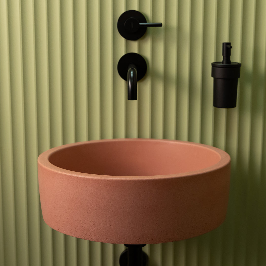 Realizzato a mano con cemento di alta qualità, questo lavandino rotondo presenta bordi morbidi e una finitura opaca liscia che si adatta a una vasta gamma di stili interni. Ogni bacino è unico, mostrando variazioni tonali naturali e segni superficiali che enfatizzano il suo carattere artigianale. Progettato per un'installazione facile sul piano di lavoro, offre sia durata che eleganza sobria per l'uso quotidiano.
